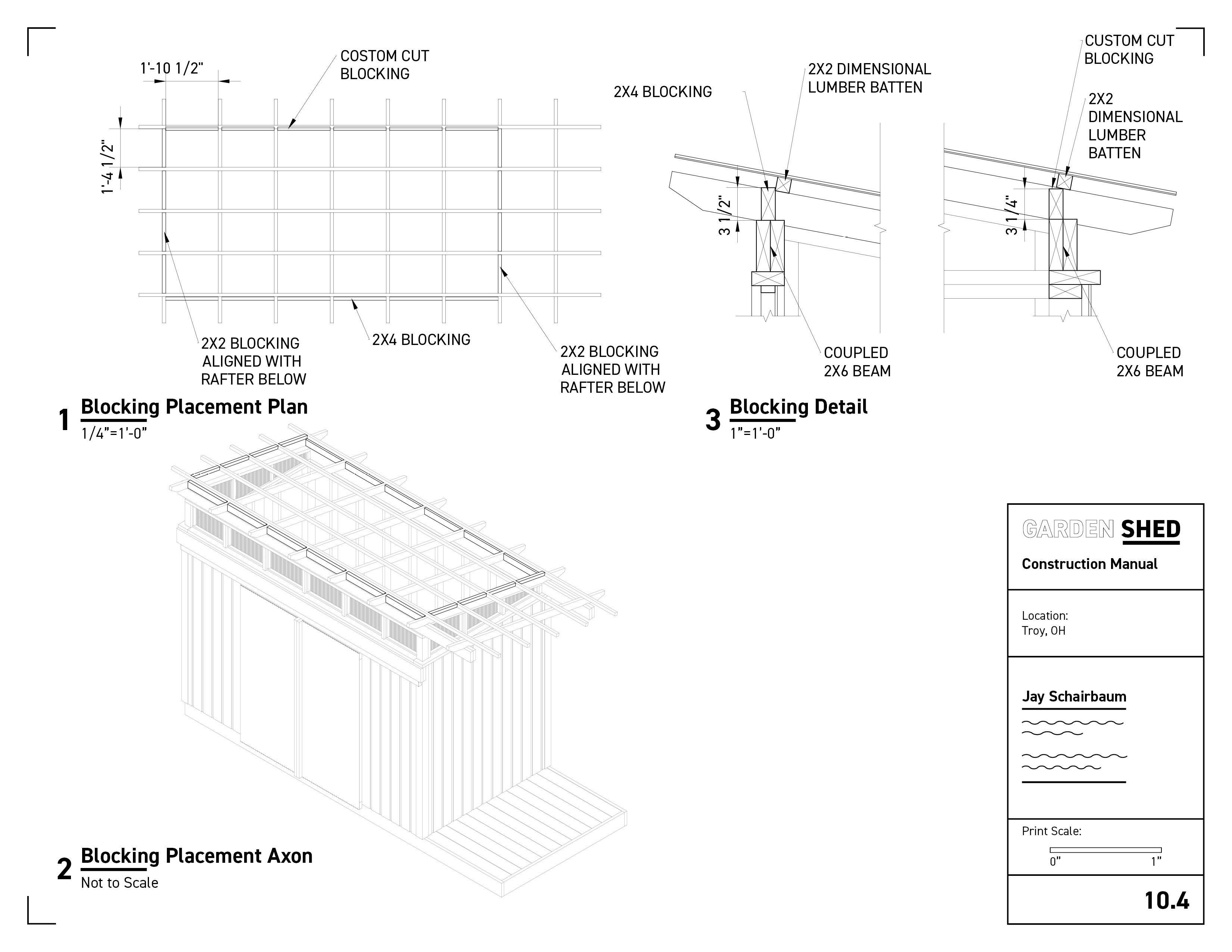 The delivery of the project included a set of detailed drawings and instructions for the client to use for the shed’s construction. Images shown are excerpts from the final document.